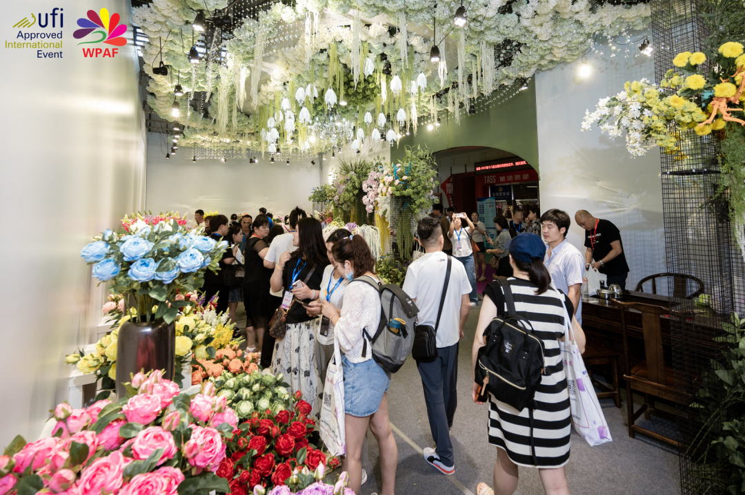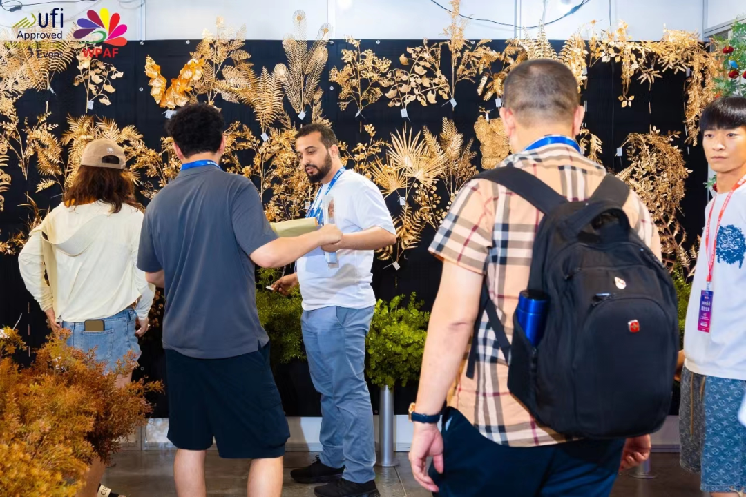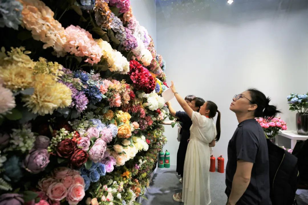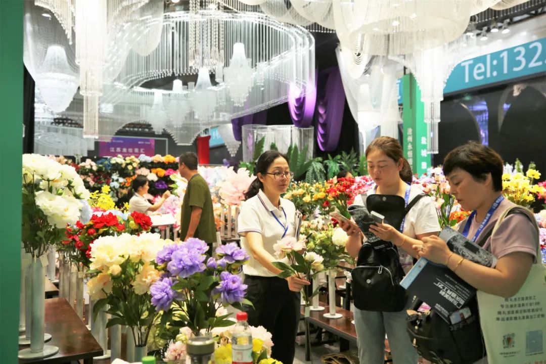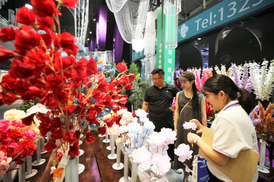 在展会现场,来自全国的跨境电商、外贸公司、婚庆公司、花艺师、美陈师、宴会设计师、软装设计师们积极地与参展商交流洽谈,了解产品工艺及设计,咨询展品详情,现场热闹非凡。