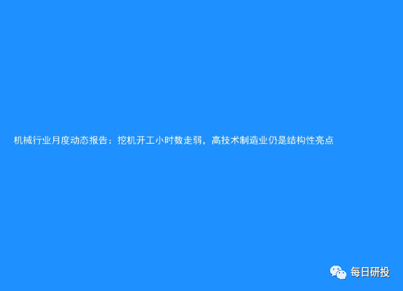 关于这篇:《机械行业月度动态报告:挖机开工小时数走弱,高技术制造业仍是结构性亮点》,有需要的小伙伴可关注并仔细阅读报告原文~