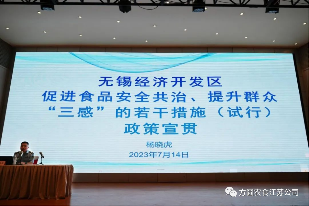 近日,无锡经济技术开发区组织各食品生产企业、大型及以上餐饮、大型商超、集体用餐配送单位和中央厨房、民办学校食堂、养老机构食堂、医院食堂、供餐超千人的企事业单位食堂的负责人和食品安全员参加“经开食条”政策宣贯会,共160余人。此次宣贯会进一步推动食品安全主体责任落实工作,全力推进“经开食条”各项政策措施,构筑食品安全防火墙,撑起群众健康保护伞。方圆标志农食(江苏)认证检测有限公司应邀参加此次宣贯会。