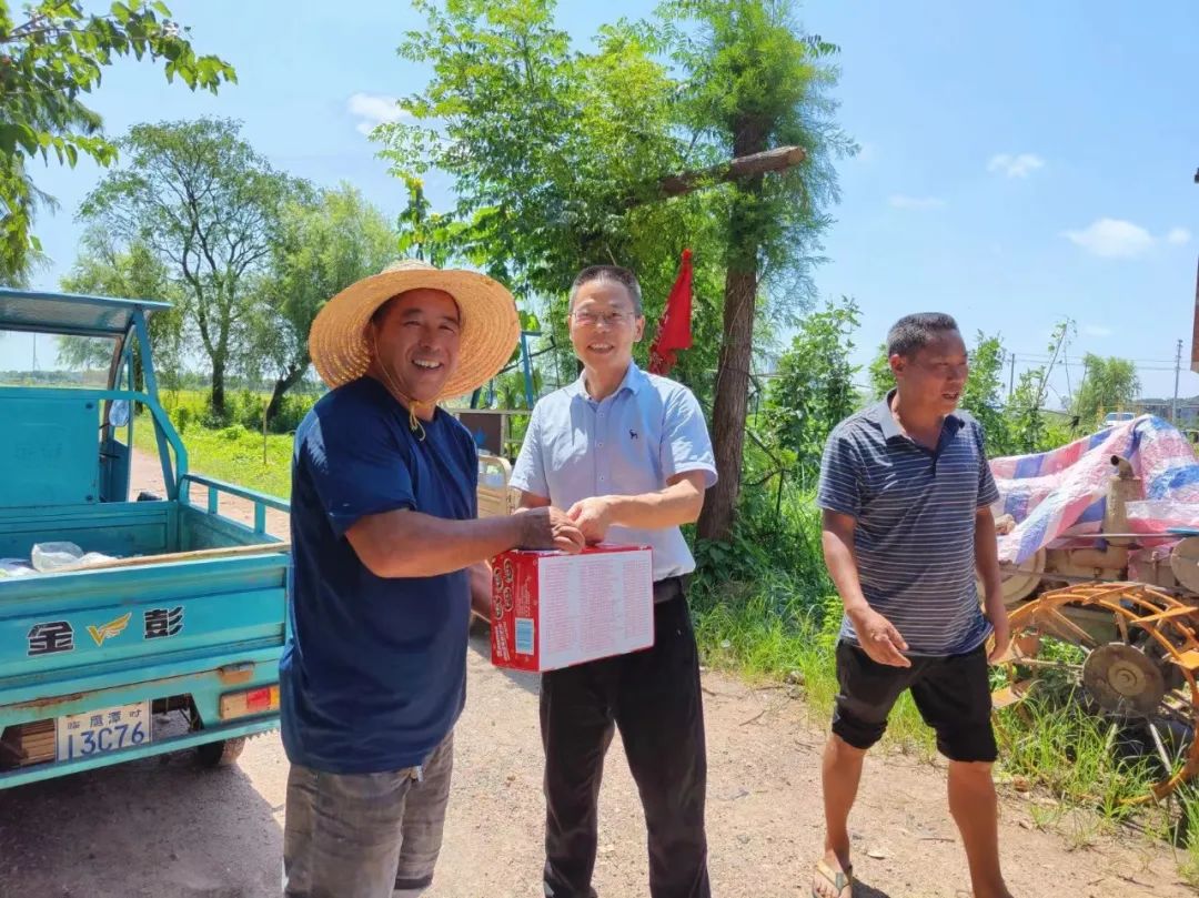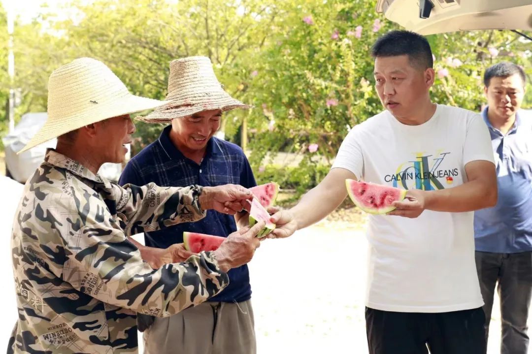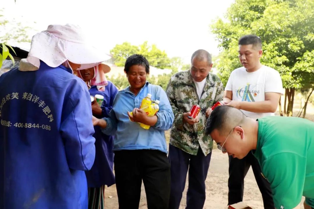 活动中,公司党支部书记带领班子成员、党员代表深入景区花海工程施工现场、苗圃生产基地一线,为坚守一线、辛勤付出的干部职工群众送去了藿香正气水、仁丹等防暑降温药品,还贴心为他们准备了西瓜、解暑绿豆汤等解暑食物,向冒着高温酷暑仍奋战在一线的他们表示崇高敬意和由衷感谢。公司支部书记叮嘱他们,在户外工作的同时要注意防暑降温,预防中暑,做好防晒等工作。同时,详细询问一线管理人员项目施工情况和安全生产工作落实情况,要求他们既要抓工程质量和生产进度,也要时刻关注职工群众身心健康,注意劳逸结合,适当调整作息时间,尽量避开高温时段作业,加强做好高温期间的各项安全防护措施,做到职工群众的人身安全及企业生产安全“两手抓”,助力企业健康安全发展。此次高温慰问主题党日活动的开展,给企业一线职工群众送去的不仅是一份夏日的“清凉”,也是支部党员服务一线职工群众的实际行动,让支部党员们更加深刻的体会到一线员工工作的不易与艰辛;更是金乔园林公司关注职工安全、关爱职工健康的重要举措,切实让广大一线职工群众真切感受到公司的关心就在身边,组织的关怀就在身边,切实提升一线职工群众的幸福感、安全感。为切实做好一线职工夏季户外防暑降温工作,关爱一线职工的健康安全,近日,邓原农业公司开展“夏日送清凉”活动。活动由公司领导班子带队,兵分三路开展,为农户们送上清爽的西瓜和清凉饮品,并宣讲了夏季防暑降温措施,叮嘱职工田间地头作业时一定要加强自我防护意识,做好防暑措施。关切的询问他们的生产生活情况,耐心听取他们对公司各项工作的意见建议。此次活动拉近了公司与职工之间的距离,让种植户们感受到公司对农业职工的关心关爱,提升了辖区内农业职工的幸福感、获得感。