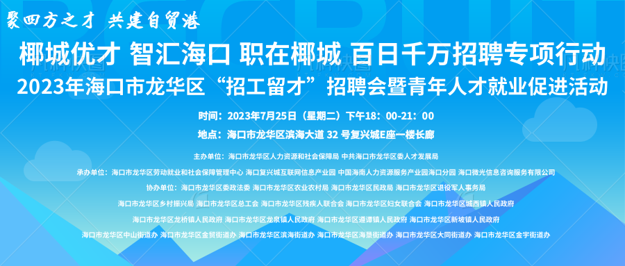 聚四方之才 共建自贸港“椰城优才 智汇海口” “职在椰城”百日千万招聘专项行动 2023年海口市龙华区“招工留才”招聘会暨青年人才就业促进活动