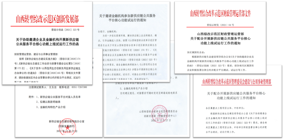 2021年12月,山西转型综合改革示范区管理委员会新供应链生态建设领导组办公室(创新发展部代)正式发文,启动新供应链公共服务平台核心功能正式启动试运行工作。