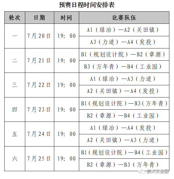 本次“长飞”杯篮球友谊赛将在7月20日至7月30日每天晚上7点举行,共有8支园区队伍参赛,比赛分两阶段(第一阶段为循环赛,第二阶段为半决赛、决赛),共进行16场比赛。