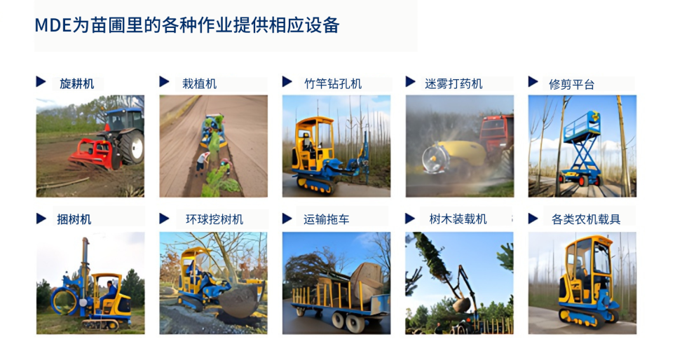 MDE专注于园林苗圃机械的研发和生产制造。自成立以来,MDE一直认真倾听用户的反馈、使用需求以及生产中遇到的问题,并成功创造出了一系列独特且满足不同客户需求的园林机械。这些产品不仅品质优良,售后服务也备受赞誉,在欧洲园林界树立了良好口碑。