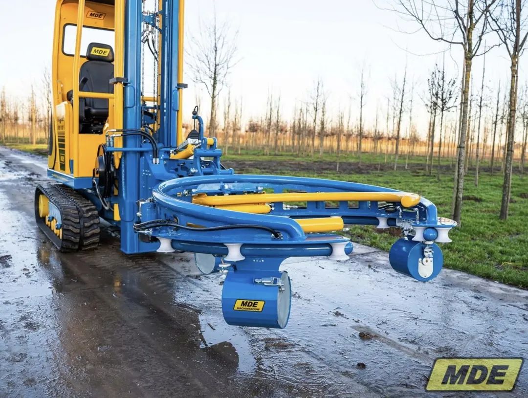 MDE公司在欧洲市场,尤其是荷兰和德国,拥有稳固的地位。他们能够为苗圃提供从土壤准备机械到苗木栽种机再到修剪平台车、打药机、切根机、挖树机、捆树机、吊车和运输车等一系列园林生产所需的设备,并为园林种植提供全方位的服务和解决方案。然而,在MDE公司的所有产品中,最受用户熟知的是他们于2003年推出的"环球挖树机"。经过多年测试与改进,该挖树机终于实现了量产,并成为了该公司最引以为傲的明星产品,深受苗圃用户喜爱。