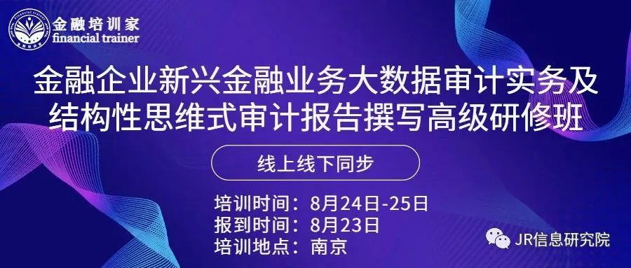 为此,金融培训家将于2023年8月24日-25日,在 “南京” 线上线下同步举办关于《金融企业新兴金融业务大数据审计实务及结构性思维式审计报告撰写高级研修班》活动。