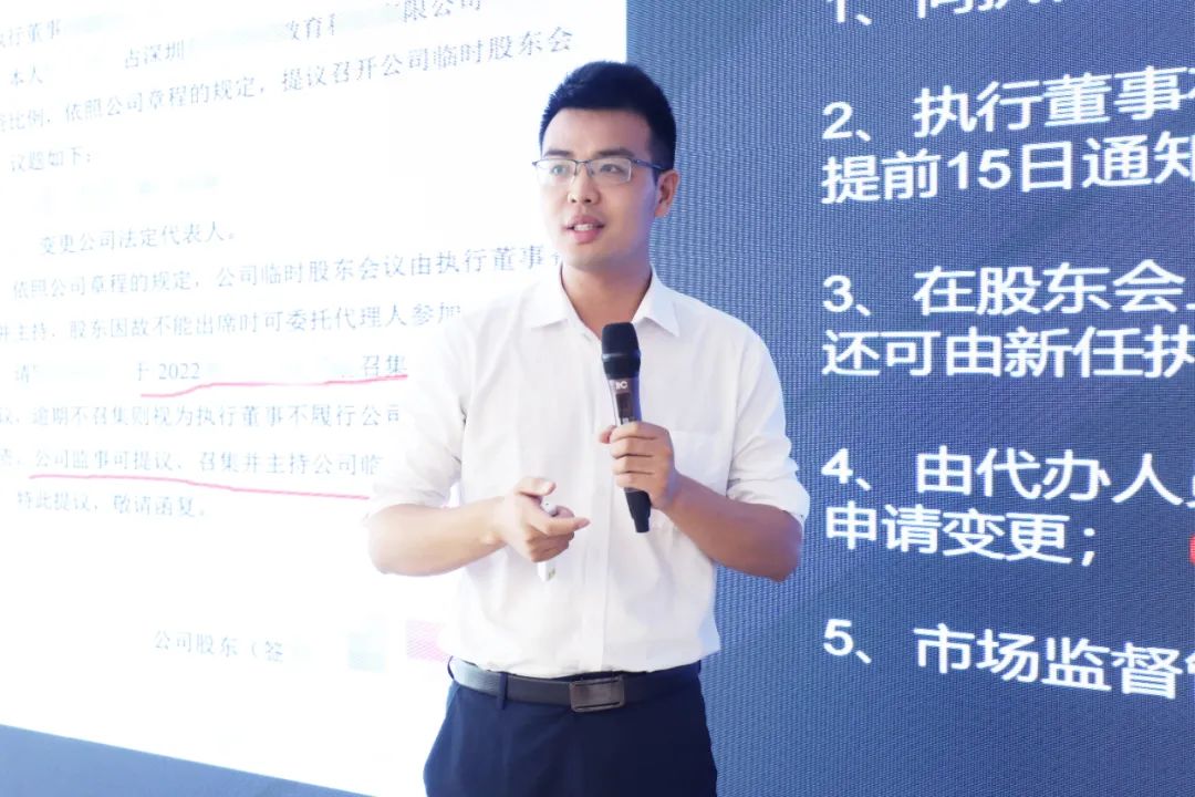 第二位分享嘉宾为盈科(深圳)律所股权法律事务部副主任张昆律师,张律师结合自己办理的一些经典案例,分别从公司控制权争夺、“人人冲突”、“人章冲突”等方面解读了公司治理中合规的重要性,包括公司章程的设计、有限责任公司撤换法定代表人的正常步骤、如何防止被对方以“废章”完成变更等,为在场的律师们提供公司治理专项法律服务开拓了新的思路。