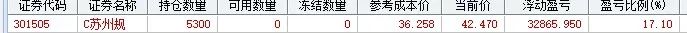今日买入:301505(c苏州规)