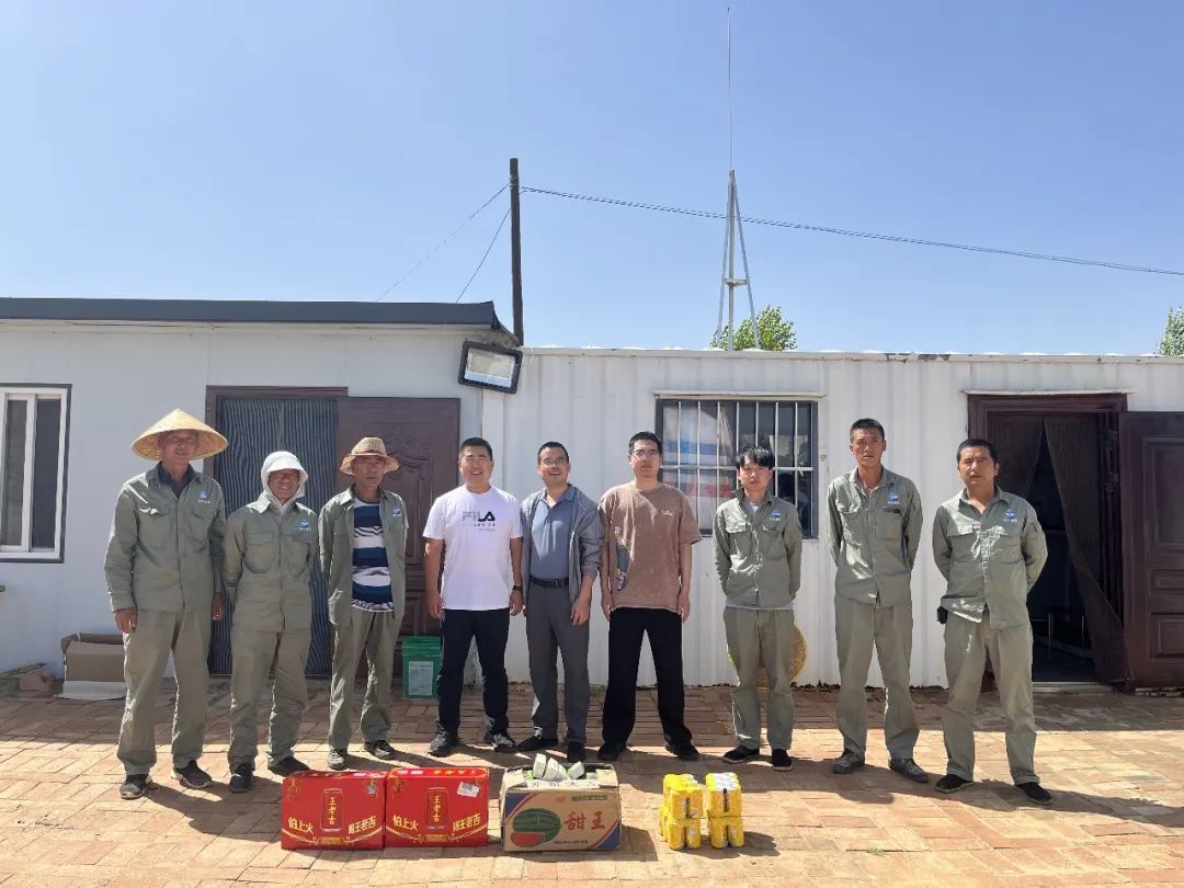 为了做好夏季高温酷暑期间广大一线职工的身体健康工作,切实维护职工合法权益,7月4日、5日,国际农合常务副总经理武学辉一行先后赴清涧万头黑牛智慧牧场及榆林横山区陕北农业综合开发马铃薯项目部,开展公司夏季“送清凉”活动,为一线职工送去了饮料、凉茶、绿豆、药品等防暑降温物品,并叮嘱大家在干好本职工作的同时,一定要做好防暑降温措施,确保自身的健康和安全。