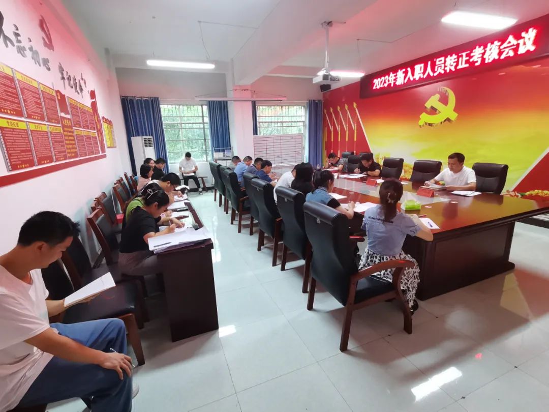 县文旅农投公司在会议室召开2023年新入职人员转正考核会议,会议由公司董事长赵建宇同志主持,在家干部职工参会。