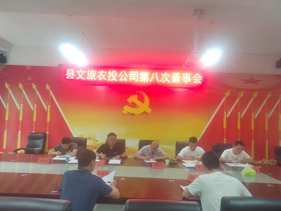 县文旅农投公司在会议室召开第八次董事会,会议由公司董事长赵建宇同志主持,纪委监委刘顺生应邀出席会议,全体董事参会。
