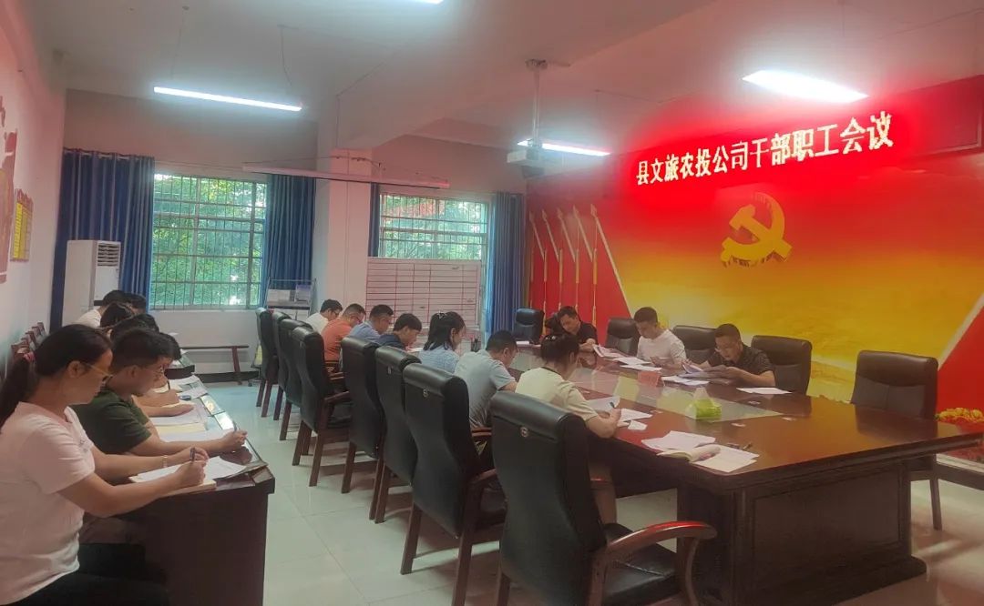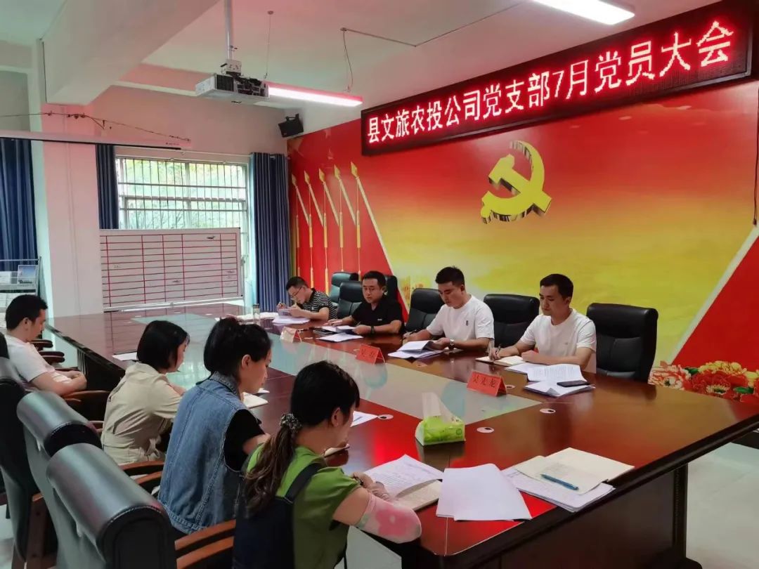县文旅农投公司党支部在会议室召开7月党员大会,会议由公司党支部书记、董事长赵建宇同志主持,全体党员、预备党员、入党积极分子参会。会议传达学习了习近平总书记有关重要讲话精神及中央、省、市、县相关文件、会议精神,研究贯彻落实意见。