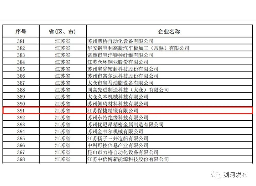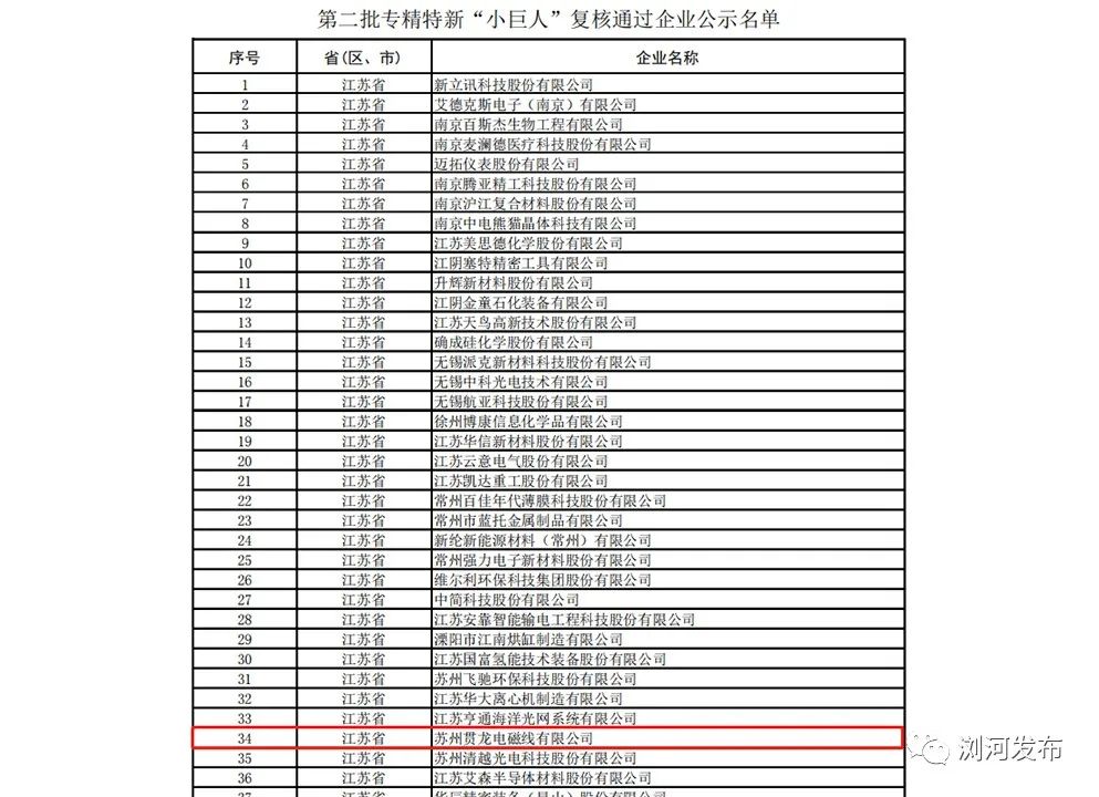 近期,江苏省工信厅发布了《关于江苏省第五批专精特新“小巨人”企业和第二批专精特新“小巨人”复核通过企业名单的公示》,浏河镇的江苏保捷精锻有限公司榜上有名。苏州贯龙电磁线有限公司进入第二批专精特新“小巨人”复核通过企业公示名单,该企业为太仓首家荣获国家级专精特新“小巨人”企业。