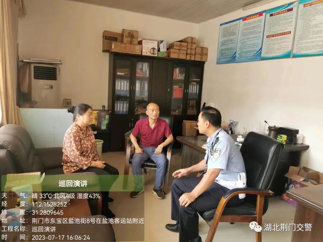 近日,荆门市公安局交警支队东宝大队民辅警前往仙居客运公司盐池客运站对客运企业负责人和驾驶员开展交通安全宣传教育活动。