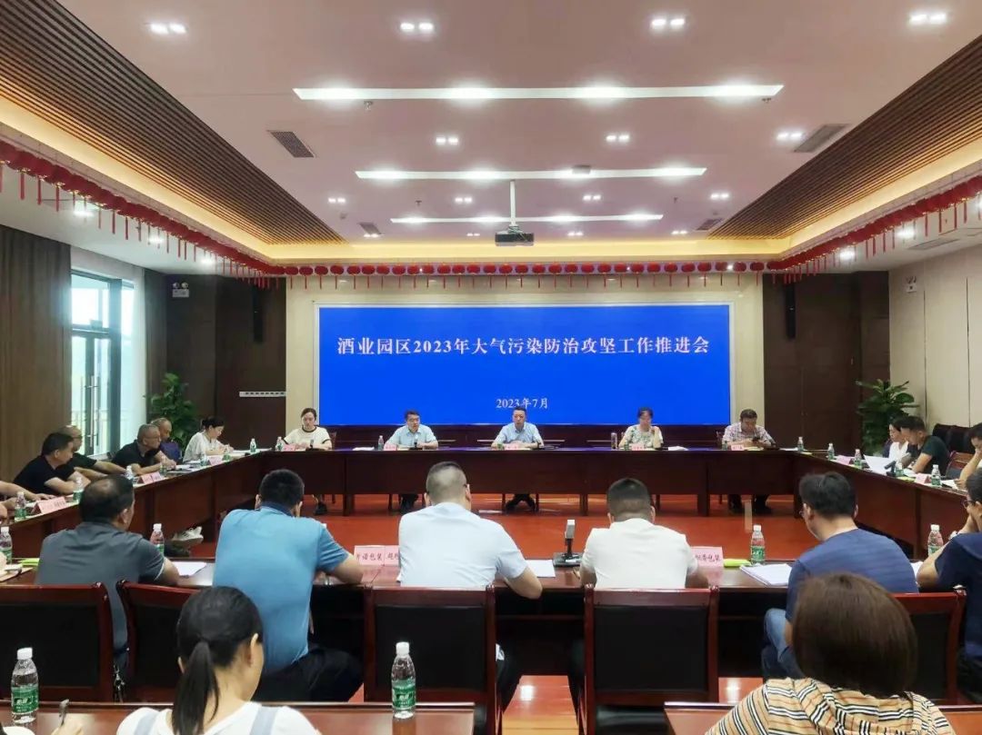 7月20日,酒业园区分行业分批次组织园区41家涉气排放企业召开2023年大气污染防治攻坚工作推进会。会议由管委会副主任伍炀主持,相关部门负责人,企业主要负责人和环保管理人员70余人参加。