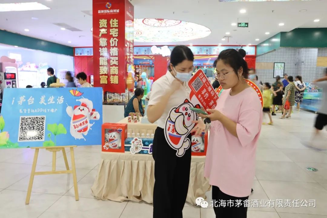 7月20日,北海市茅畬酒业有限责任公司在合浦县隆鑫商业广场和安超市内开展了“i 茅台 美生活”为主题的数字营销地推活动,持续提升茅台品牌影响力,让茅台“美产品”“美服务”走进大众生活,助力茅台数字营销平台的宣传推广。