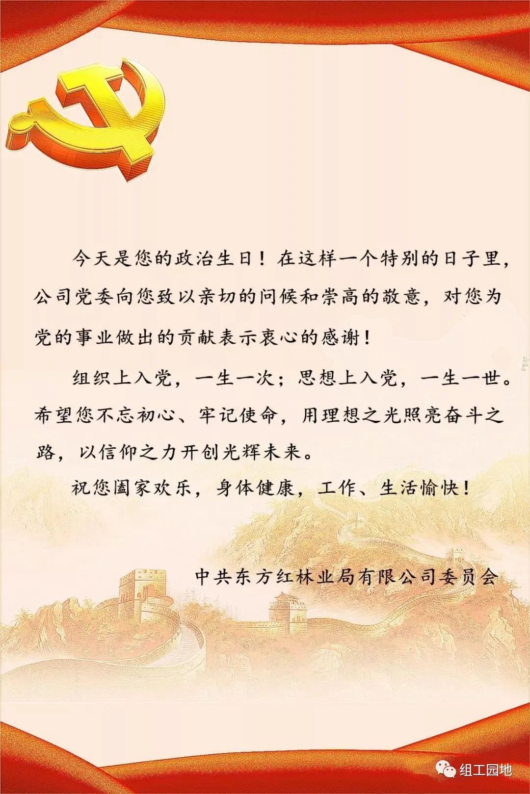 东方红林业局有限公司党委7月21日共产党员政治生日贺信