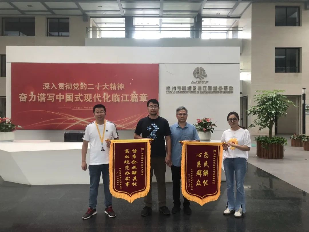 7月20日,临江比中联合物流园区负责人与深圳美团优选有限公司负责人将两面印有“情系企业 解其忧”“高效规范办实事”的锦旗送到了街道应急消防管理中心,感谢街道对企业安全生产工作的帮助。