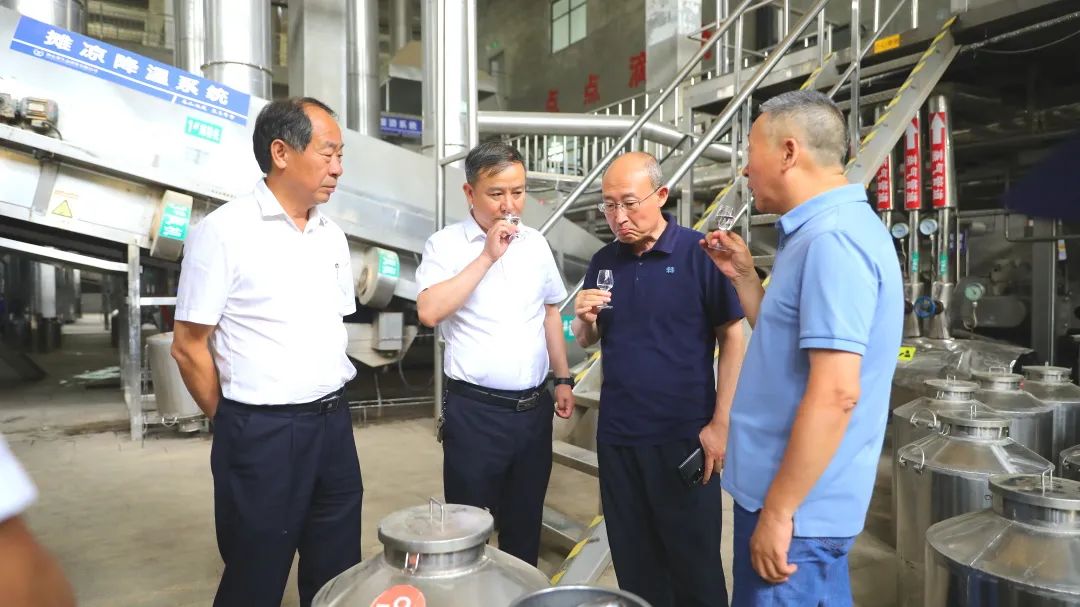 7月18日,中国酒业协会理事长宋书玉、副秘书长杜小威莅临神农架生态酒业有限公司调研指导,劲牌有限公司董事长吴少勋、副总裁杨强、神农架生态酒业董事长刘庭林、总经理刘勇兵全程陪同。
