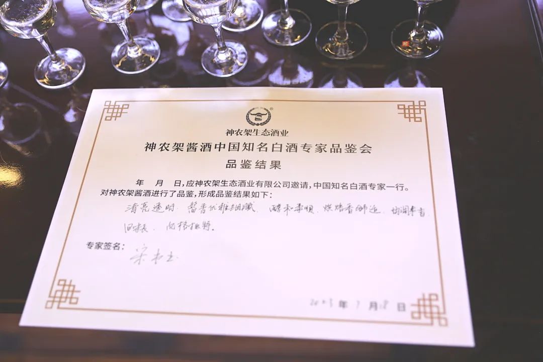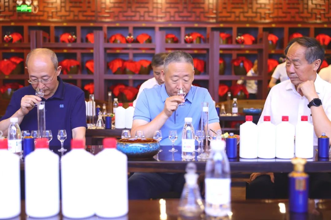 在公司酱酒体验馆,宋书玉一行对公司投产历年以来的酱香原酒进行逐一品评,并分别给予品评意见,期间为2016年的酱香原酒书写品鉴结果:清亮透明,酱香优雅细腻,醇和柔顺,烘培香舒适、协调,余香回味长、风格独特。