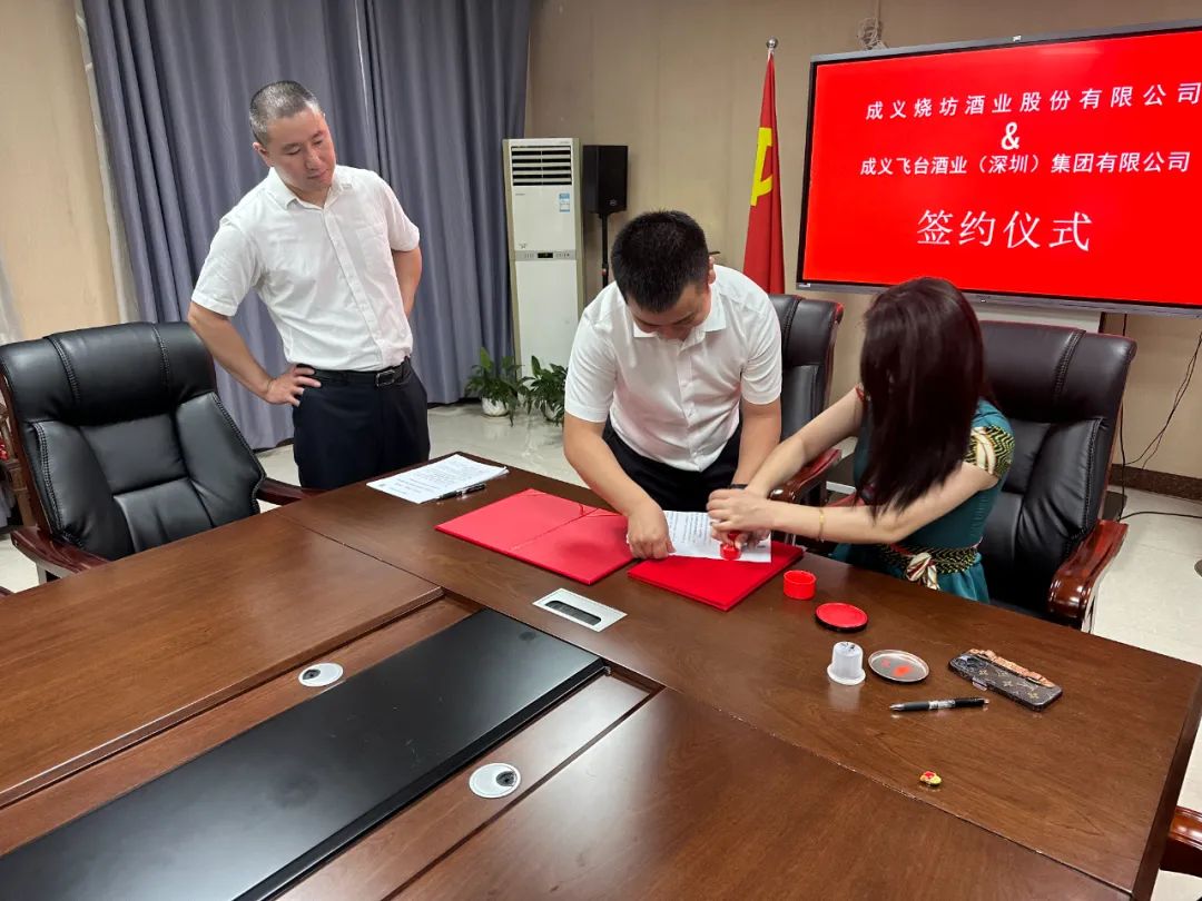 2023年7月21日,成义烧坊酒业股份有限公司与成义飞台酒业 (深圳) 集团有限公司在成义烧坊成功举行了签约仪式。