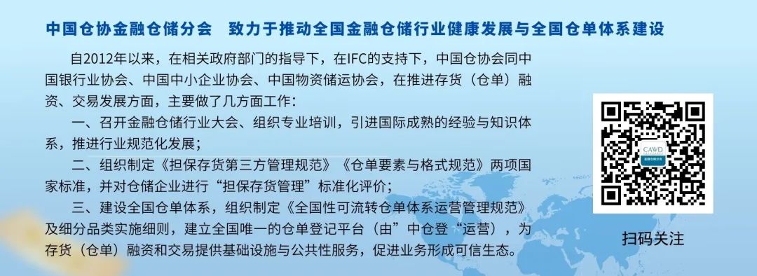 担保存货管理企业资质评价工作,有助于提升企业存货监管与监控服务质量,有助于推动解决中小企业融资难;该项标准化评价,也是贯彻落实银保监会与中国人民银行联合印发《关于推动动产和权利融资健康发展的指导意见》(银保监发〔2022〕29号)中,“对于合作监管方,应评估其监管能力,明确准入条件,实行名单制或分级管理”的重要措施。