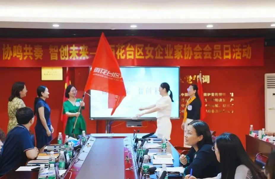 本次会员日活动,同时举办了轮值会长交接仪式。中协智能总经理、第三季度轮值会长刘承红代表执行会长周玉雪、冒懋等从第二季度轮值会长姜玲手中接过雨花台区女企协会旗。
