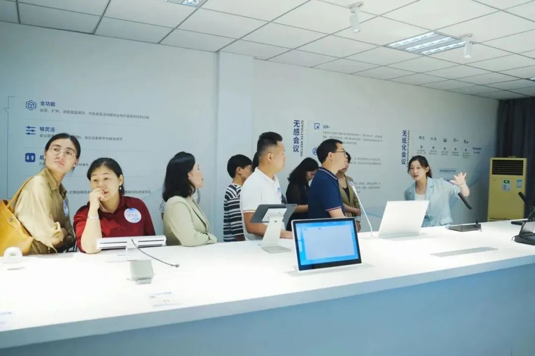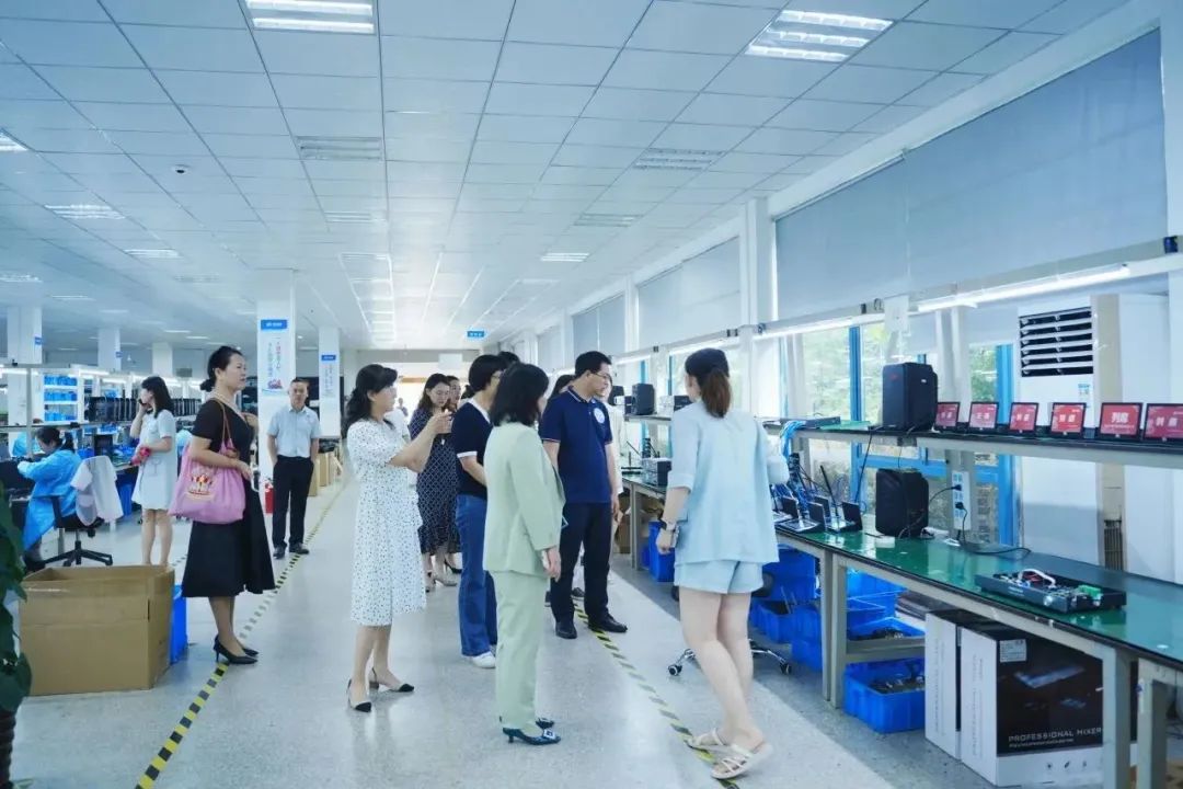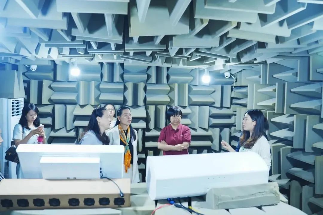 雨花台区女企协一行首先参观了中协智能。声学展厅、实验室、智慧教室、小批量测试车间为女企业家们展现了中协智能在声学领域的研发、制造能力,也为女企业家们呈现了新时代下声学技术赋能场景的多项应用,得到了参观嘉宾的高度认可和赞扬。
