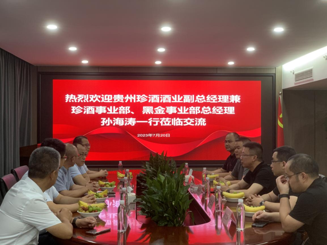 7月20日,贵州珍酒酒业副总经理兼珍酒事业部、黑金事业部总经理孙海涛一行到糖酒公司参观交流。