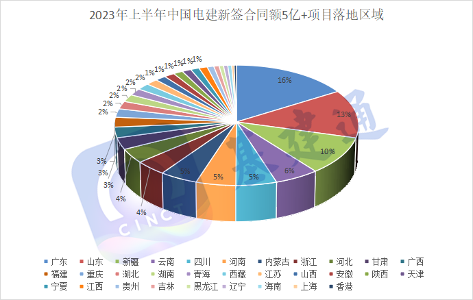 2023年上半年中国电建国内业务遍及31个省自治区直辖市,广东、山东、新疆、云南、四川、河南、内蒙古、浙江等是大项目落地的主要省份。在海外市场,中国电建上半年迎来大幅增长,同比增幅达56.53%,拿下 33 个5亿+海外项目,共638.9亿元,主要在孟加拉国、莱索托、巴基斯坦、菲律宾、尼泊尔、伊拉克等地区取得了优秀成绩。
