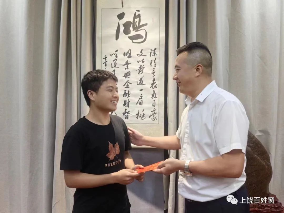 上饶市自家人餐饮公司董事长陈文旺,得知贫困学子何可文父亲患渐冻症,家里非常贫困,他又以626分考入西安电子科技大学。