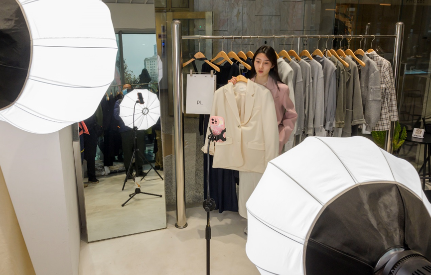 近年来,云尚大力发展数字经济和楼宇经济,抓紧直播风口,重点打造武汉最大服装产业电商直播生态体系——云尚直播电商集聚区。电商衍生企业纷纷选择入驻云尚,在云尚门口,经常能看到服装模特和摄影师忙碌的身影。不少商家选择开设抖音、快手、小红书等社交平台账号投放相关产品短视频,吸引网友下单。