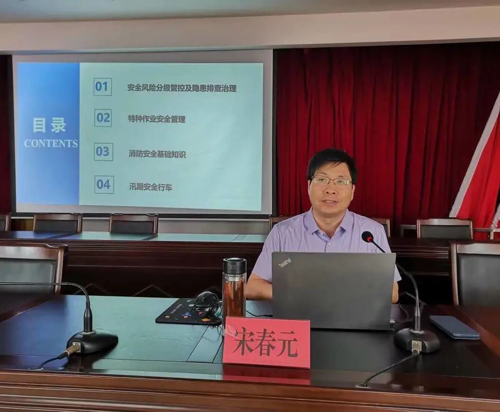 本次培训特别邀请到了盐城工业职业技术学院副教授、高级工程师、盐城市安监局专家组成员、国家注册安全工程师、国家注册安全评价师、盐城市安全生产教育资深讲师宋春元进行授课。培训的重点内容涵盖安全风险分级管控及隐患排查治理、特种作业安全管理、消防安全基础知识以及汛期安全行车四个方面。
