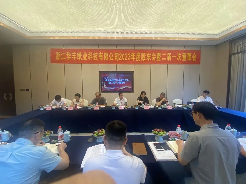 7月20日,浙江华丰纸业科技有限公司2023年度股东会暨二届一次董事会在杭州召开,华丰集团党委书记、董事长、总经理,华丰科技董事长徐贤俊主持会议,中国烟草投资管理公司张莹、方舟昕,上海烟草集团有限责任公司股东代表张国峻、浙江中烟工业有限责任公司彭翔,杭实产投控股(杭州)集团有限公司叶永成、徐郑枫,华丰集团党委委员、副总经理,华丰科技总经理陈春辉,公司高级管理人员、董事、监事等出席此次会议。