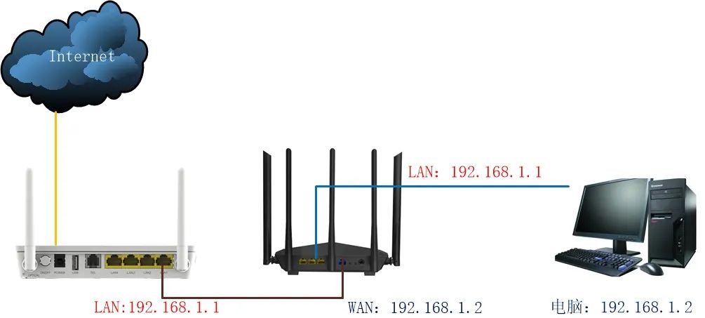 当电脑192.168.1.2的电脑登录路由器的时候,有的时候登录到路由器,有的时候会登录到猫192.168.1.1,这样的配置也导致网络有时候可以正常上网,有的时候网络老是有问题。为什么IP地址不能设置重复,假如你开车去商店,开始的时候走在幸福路,然后转到祥云路,从祥云路又转到了另外一条幸福路,这时我相信你应该很蒙圈,不知道该怎么走。路由器转发电脑数据也是一样的道理,每条路应该都有不一样的路名,路由器要有不一样的网段。当然大部分路由器,当WAN口获取的是192.168.1.2 ip地址后,LAN的地址强制不可以设置为192.168.1.1(192.168.1.0网段)。