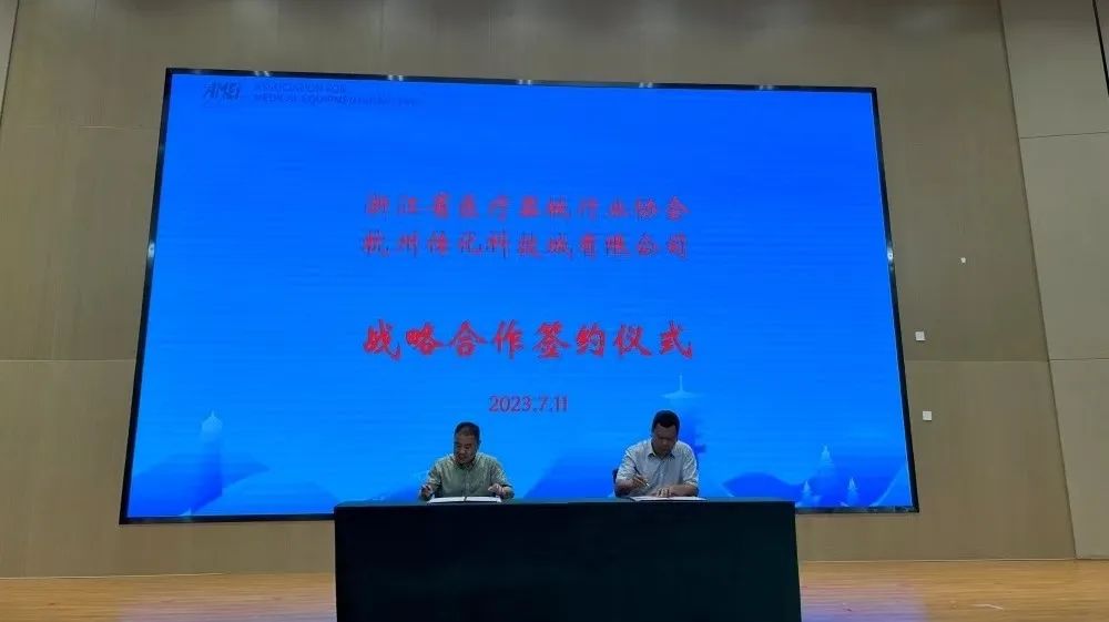 2023年7月11日下午,浙江省医疗器械行业协会会长工作会议在杭州临平顺利召开。出席会议的副会长单位代表及嘉宾共计60余人。会议由张汉文秘书长主持。在本次会上,杭州传化科技城有限公司与浙江省医疗器械行业协会进行了战略合作签约。