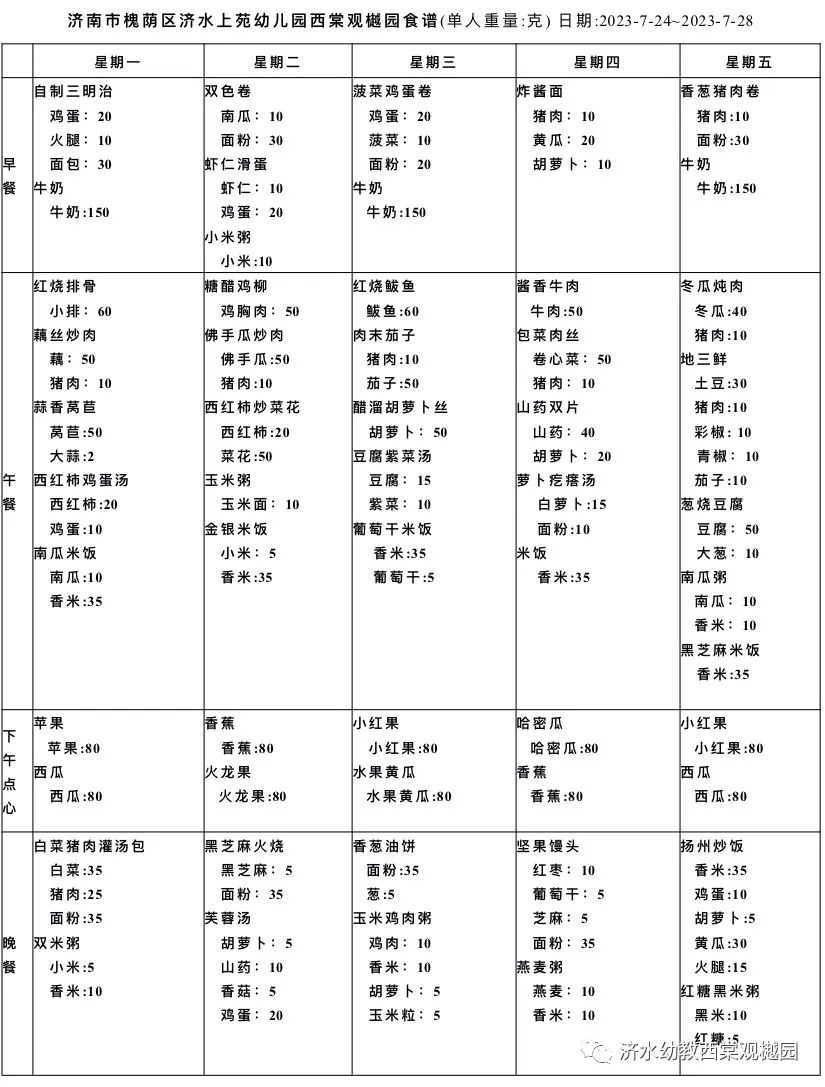 济水幼教集团西棠观樾幼儿园食谱