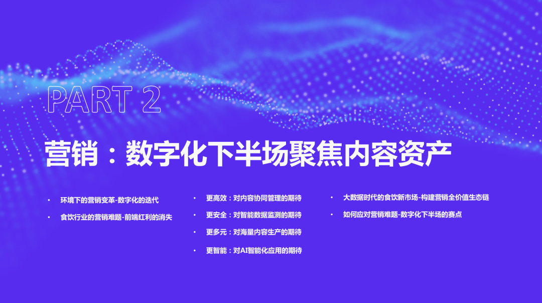 随着云计算、云存储、大数据、AI等技术的发展,食饮行业不仅在制造和物流上达成了高度数字化的链接条件,内部上下游之间更需要选择高效、安全、智能、多元的架构,才能在全量链接的基础上带来智能化升级。通过内容营销的IT架构革命,快速提升业务经营效益和组织管理质量,对企业从设计、研发、生产、营销到用户生命周期数字化转型与产业链协同,搭载“内容科技”的组织化优势,才能打赢这场数字化的战争。