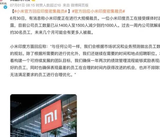 面对印度政府对小米公司的霸道和不公,雷军作为小米的创始人决定采取强硬态度进行回击。他宣布进行大规模裁员,并且已经裁员了大约500人,并表示在未来几个月还将继续进行人员的“合理优化”。这一裁员行动实际上是对印度政府不合理打压的有力反制,也是对印度明抢中国科技企业的回击。