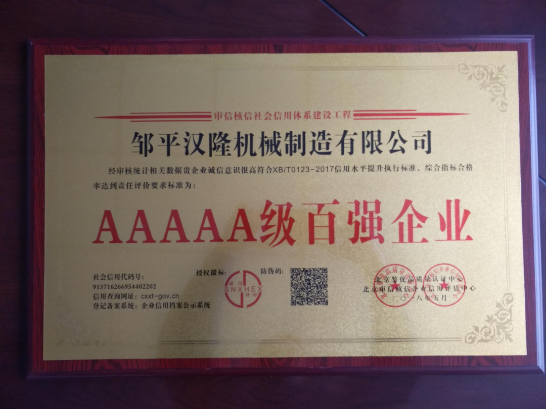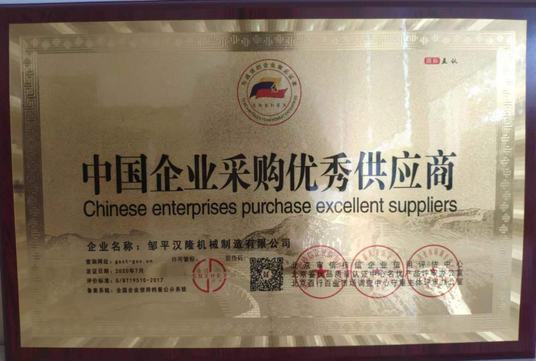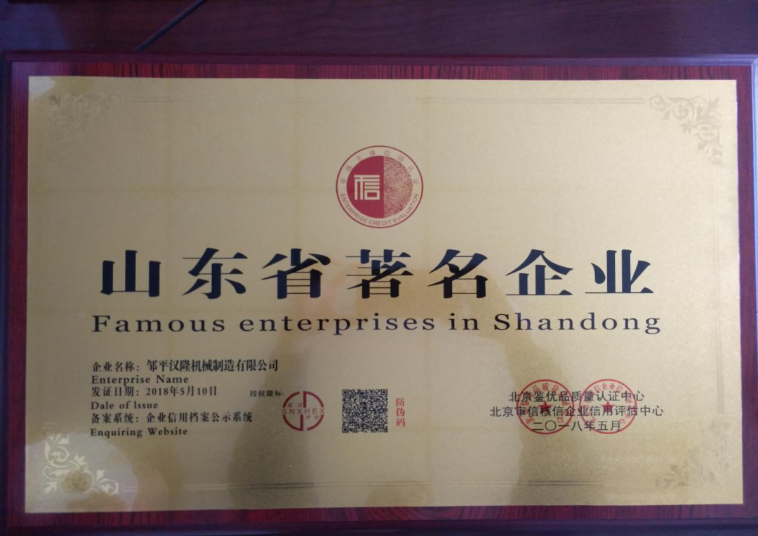汉隆机械(山东)有限公司,位于山东邹平,公司始建于2009年注册资本2000万元。公司南邻济青高速,东临205国道,交通便利,四通八达。并已通过S09001、IS014001、0HSAS18001国际质量管理体系认证等资质。