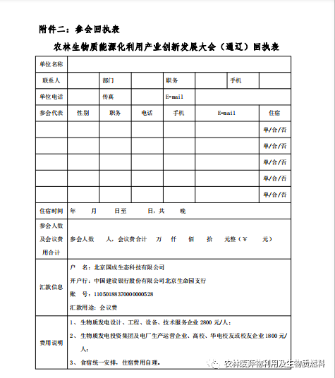 农林生物质能源化利用产业创新发展大会(通辽)回执表