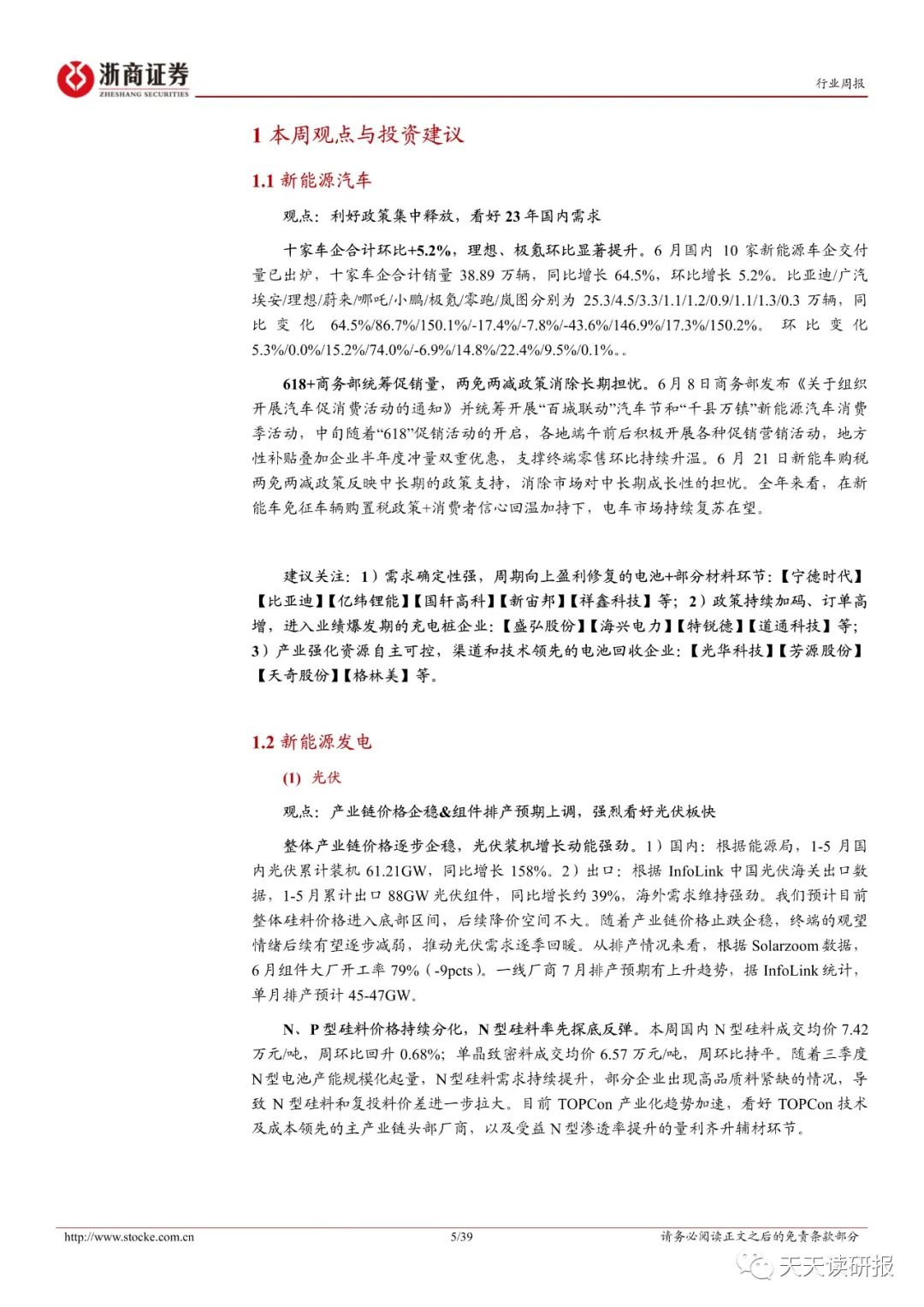 2)出口:根据 InfoLink 中国光伏海关出口数据,1-5 月累计出口 88GW 光伏组件,同比增长约 39%,海外需求维持强劲。