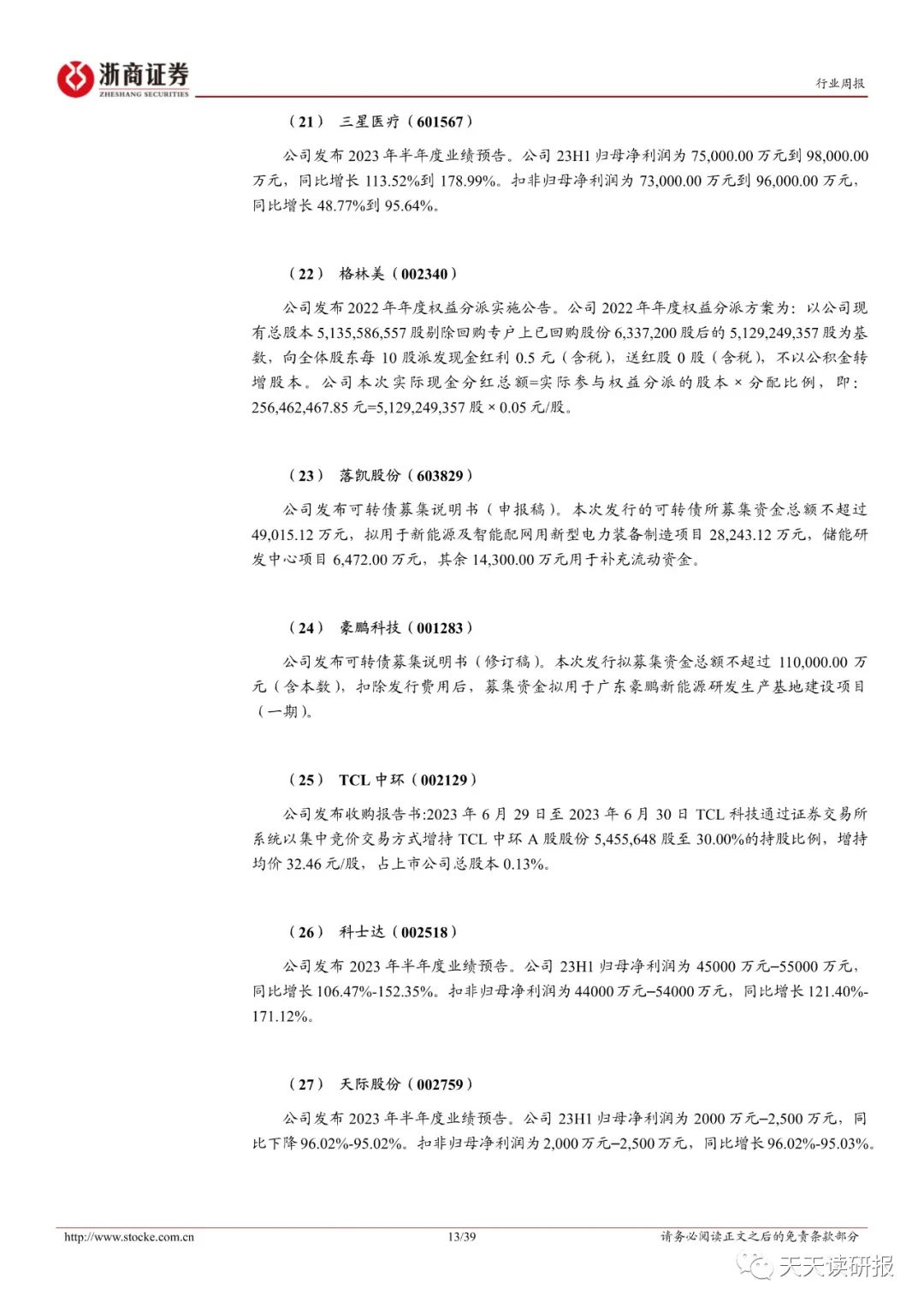 我们预计目前整体硅料价格进入底部区间,后续降价空间不大。随着产业链价格止跌企稳,终端的观望情绪后续有望逐步减弱,推动光伏需求逐季回暖。从排产情况来看,根据 Solarzoom 数据,6 月组件大厂开工率 79%(-9pcts)。