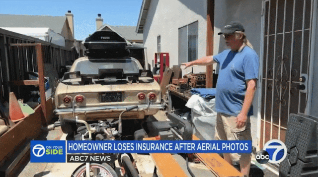 屋主名叫斯文(CJ Sveen),居住在东湾的Oakley,他一直使用的是加州汽车协会 (CSAA) 保险集团(一家 AAA 保险公司)的保险,时间已经长达15年,但是最近收到保险公司的信,声称取消了他的保险订单,原因是保险公司在他的院子里发现了“碎片、危险状况、轮胎或一辆破旧的汽车”。