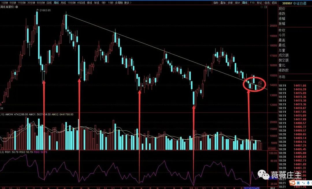 从 中证白酒 的趋势结构来看,目前其周K线位于下行趋势线上方,(这根下行趋势线,一直在我的软件中,没有更改),且下方相对强弱指标(具体参数设置和使用方法,在我们的圈子中有帖子),已于6月中出现入场信号,这也是我在六月中旬连续发文提示大家的原因之一。