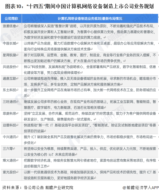 “十四五”期间,计算机网络设备制造代表性企业在年报中披露其公司战略、经营规划等,其具体业务规划如下: