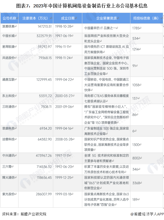 从计算机网络设备制造行业的上市企业布局和已有公开信息分析,注册资本最多,成立时间最早的是三六零,招投标信息最多的是中兴通讯。