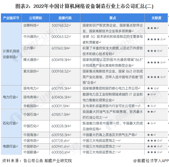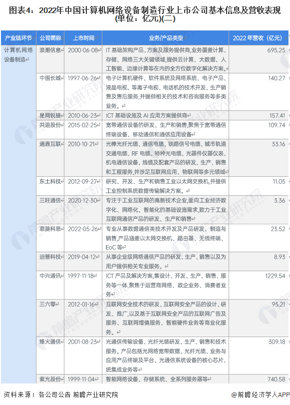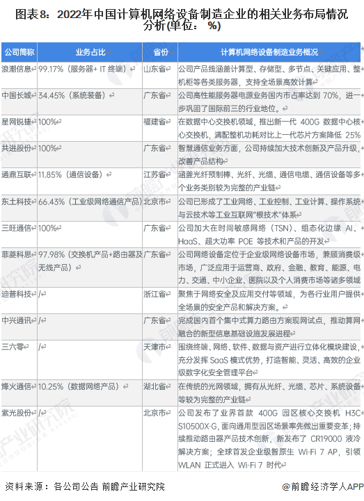 目前,我国以计算机网络设备制造相关行业为主营业务企业较多,且计算机网络设备制造产业链上下游较为庞大。其中中游计算机网络设备制造环节主要有紫光股份、锐捷网络、中兴通讯等上市企业。