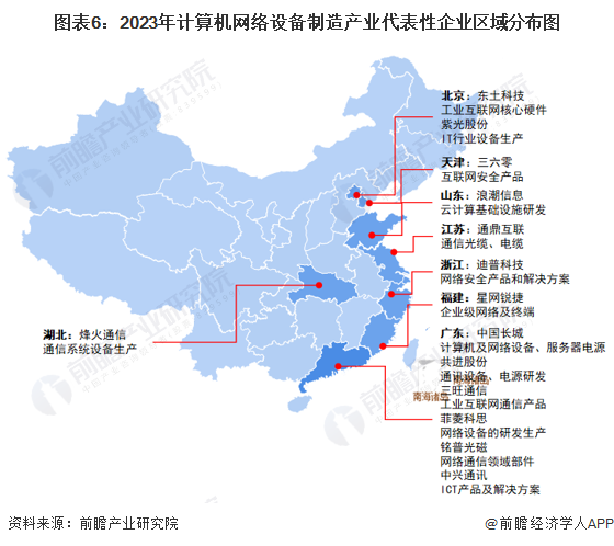 从代表性企业分布情况来看,我国计算机网络设备制造代表企业分布在广东、江苏、浙江、山东等东部沿海省份,其中广东省的计算机网络设备制造产业代表性企业较多。