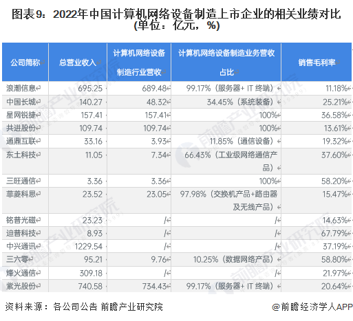 本文核心数据:计算机网络设备制造业务收入